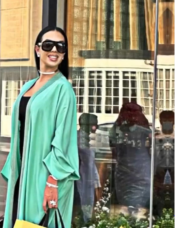 إختارت جورجينا عبايةً باللون الأخضر خلال تسوقها من إحدى المتاجر في الرياض حيث انتشرت صورها وفيديوهات مسربة لها خلال خروجها من المحل.
