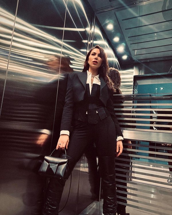 ارتدت دانييلا بنطال أسود ونسقته مع قميصٍ أبيض، وكورسيه مقلّم بخطوط أفقية كما إنتعلت حذاء عالٍ من الجلد باللون الأسود وحقيبة من القماش واللون عينه وأكملت دانييلا اللوك ببلايزر قصير ومجوهرات فضية اللون.