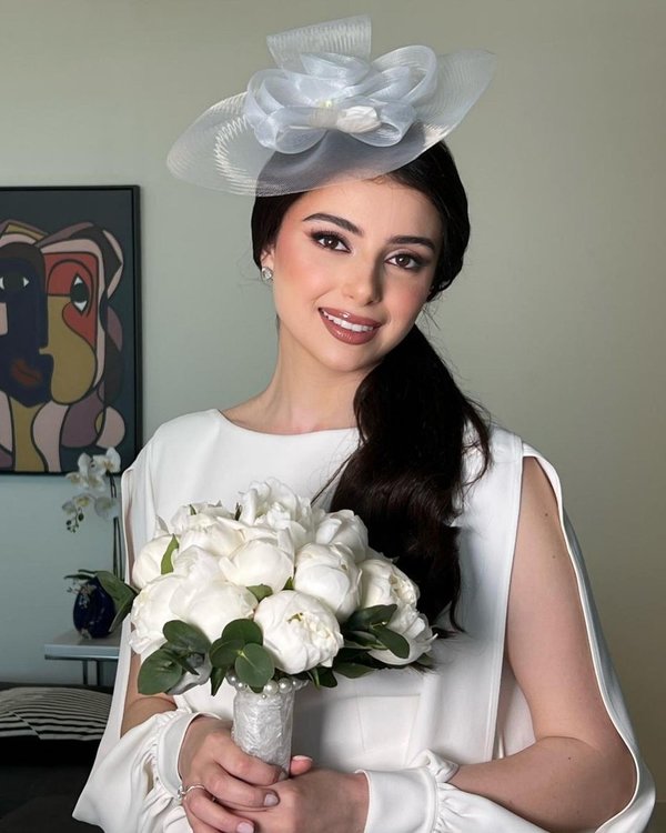 واختارت ماريتا ليوم زفافها جمبسوت أبيض من توقيع إيلي صعب واعتمدت تسريحة شعر عصرية لافتة اذ وضعت قبعة على شعرها مع مكياج ناعم للغاية.