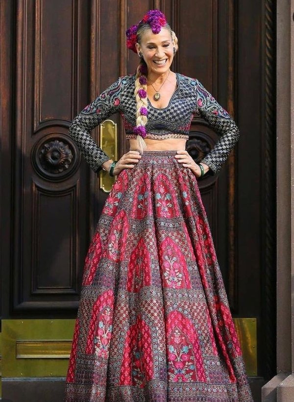 زي هندي ملفت اختارته سارة جيسيكا باركر مظرز بخيوط ملونة ومميزة.