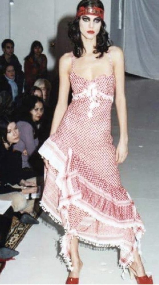 جئناك اليوم بالجواب: تعود هذه القطعة للمصممين Michael and Hushi حيت تم تقديم هذا الفستان في عرضهما عام 2001.