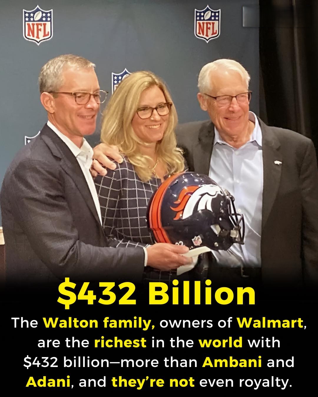 وفقا لأحدث التقارير والإحصائيات لعام 2025، تُعد عائلة Walton الأمريكية، أصحاب سلسلة متاجر Walmart، هي الأغنى على مستوى العوائل التجارية غير الملكية. ثروة العائلة تقدر بحوالي 432.4 مليار دولار، ما يجعلهم متصدّرين القائمة بفارق كبير عن العديد من العائلات العقارية أو الملوكية.