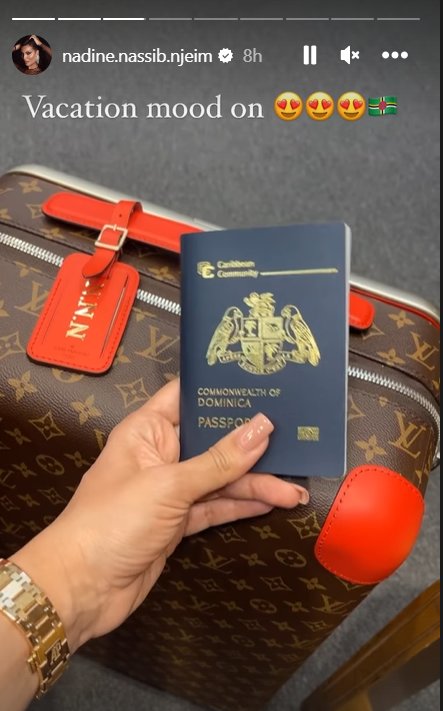 بعد إنتهاء مسلسلها الرمضاني "وأخيرًا" الذي شاركها بطولته قصي الخولي، ها هي نجمة رمضان نادين نجيم تتحضر لأخذ عطلة حيث شاركت عبر ستوري إنستغرام صورة جواز سفرها من المطار.