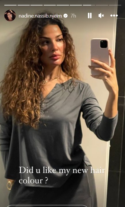 وضمن الصور التي شاركتها، أحبّت نادين أن تأخذ برأي الجمهور بعد أن غيّرت لون شعرها مضيفةً إليه بعض الخصلات الذهبية. هي التي تخلّت عن الشعر القصير وإعتمدت هذا الموسم التسريحة المموجة.