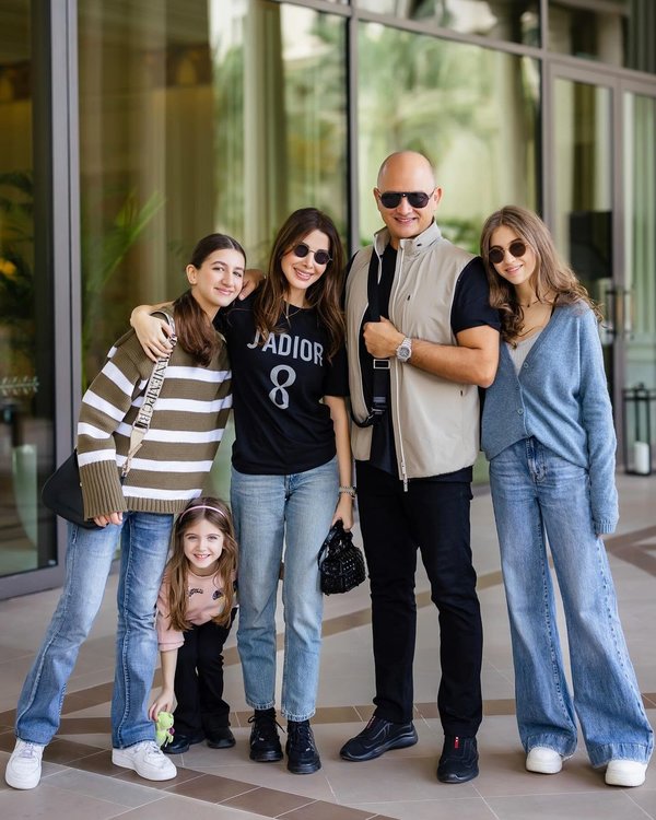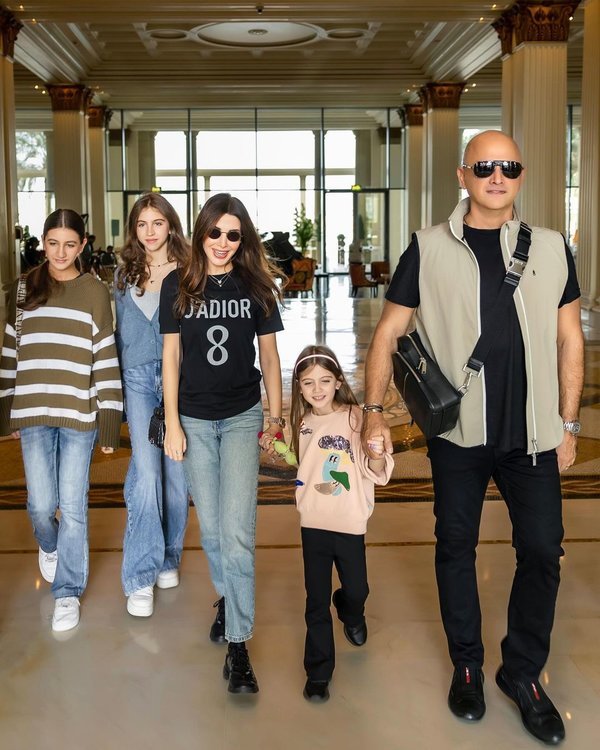 الملفت في الصورة هو رشاقة نانسي وبناتها إذ إخترن جميعهن ارتداء الجينز الفاتح من الأسفل مع الأحذية المريحة والقمصان الواسعة لتبدو نانسي وكأنها أختهن. أما ليا فبدت سعيدة للغاية وقامت بحركات لطيفة ومضحكة خلال التقاط الصور.