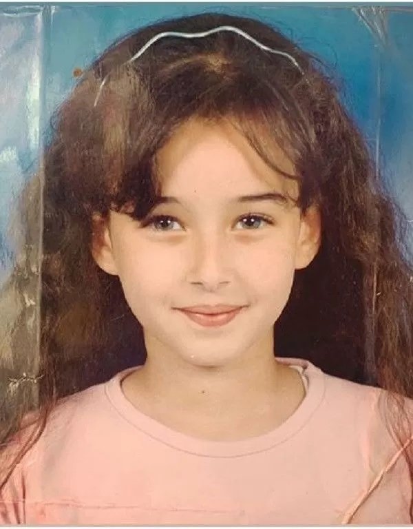 صورة للنجمة هيفا وهبي وهي صغيرة تبرز مدى جمالها وملامحها الجذابة منذ الصغر.