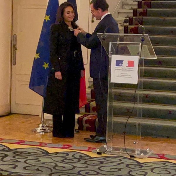 وتوجهت بالشكر لكل من ساهم في ذهه الخطوة "شكراً للجمهورية الفرنسية ولسعادة سفير فرنسا، ولعائلتي وجمهوري وأصدقائي، وأعدكم أن أستمر في محاولة إسعادكم".