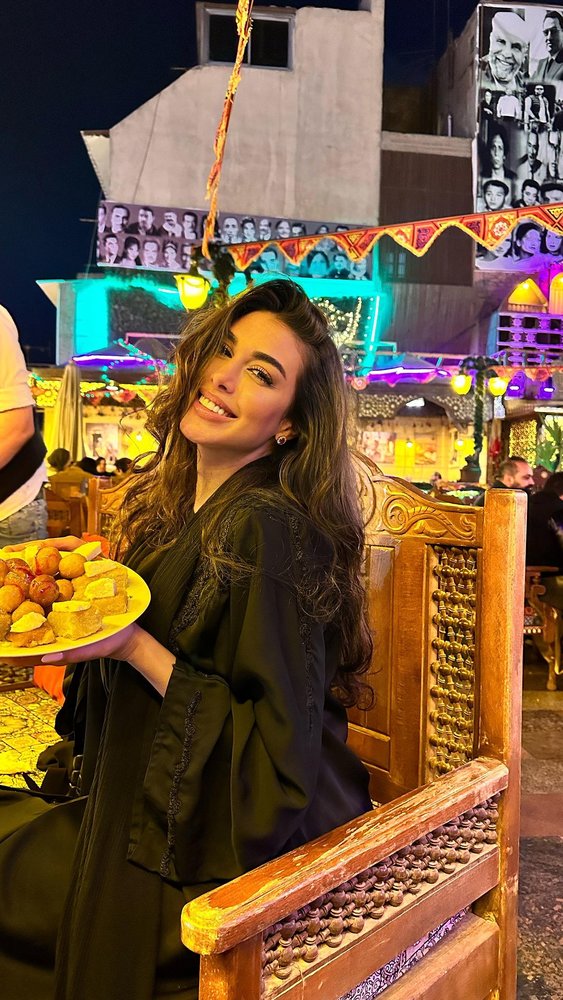 بأجواء شهر رمضان المبارك، ظهرت ياسمين صبري مرتديةً عباية سوداء ونقابٍ أسود وفي يديها صحن مليء بالحلويات التي تشتهر فيها منطقة الحسين في مصر إذ تعدّ الحلويات العربية من أساسيات هذا الشهر الفضيل.