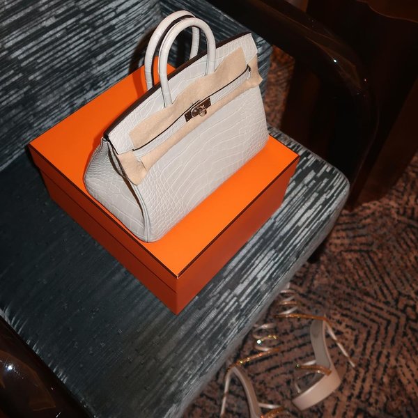 ونشرت يومي على صفحاتها فيديو لها وهي تفتح علبة العلامة العريقة هيرمز Hermès بحيث شاركت صورة الحقيبة وهي Hermès Birkin Alligator Mississippi Matte باللون الأبيض والتي يصل سعرها الى 250 الف دولار اميركي.
