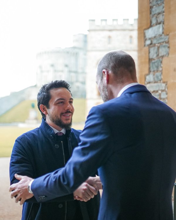 علّق الأمير الحسين على الصورة قائلًا: "مع الصديقين العزيزين الأمير عبدالمتين والأميرة أنيشا روزنا" كما ونشر أخرى مع صديقه الأمير ويليام جاء فيها:" مع صديقي العزيز سمو الأمير ويليام، أمير ويلز، في قصر ويندسور اليوم".