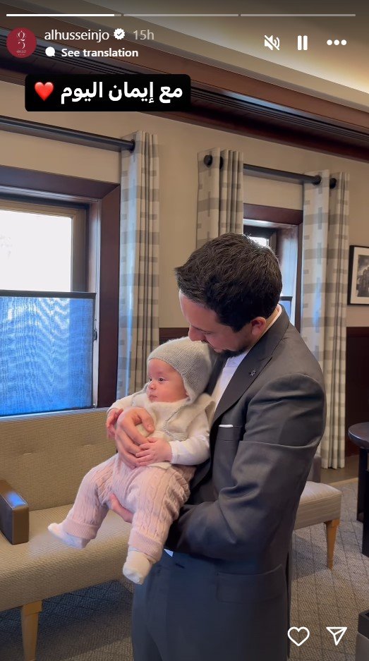 وأرفق الفيديو بتعليق مقتضب يحمل الكثير من المعاني، وكتب "مع إيمان اليوم". حيث ظهر الأمير الحسين وهو يحمل ابنته ويمشي للقاء مع مجموعة من الشباب الذين فرحوا كثيراُ برؤية الأميرة الصغيرة.