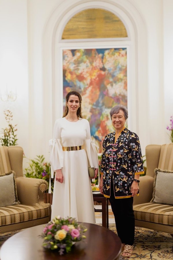 خلال جولتها في سنغافورة والتي رافقت فيها ولي عهد الأردن الأمير الحسين، تألقت الأميرة رجوة بالعديد من الإطلالات التي انفردت ببساطتها حيث خلت من الإضافات، الشك، والزيادات خاصةً وأن الأميرة رجوة معروفة بستايلها الذي يشبه حماتها الملكة رانيا العبدلله.