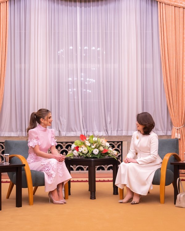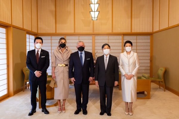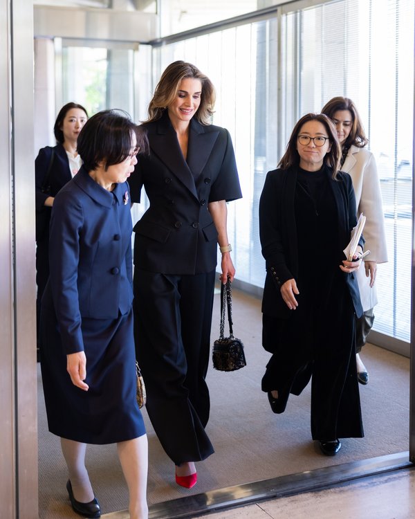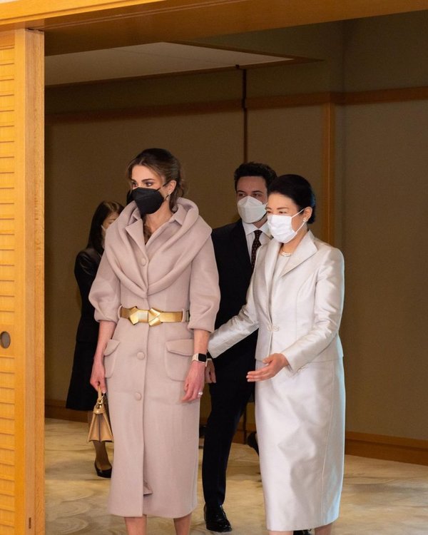 وضمن الزيارة الرسمية التي قام بها جلالة الملك عبدالله الثاني وجلالة الملكة رانيا العبدالله وسمو الأمير الحسين بن عبدالله الثاني ولي العهد إلى اليابان، إختارت الملكة مجموعة من الأزياء من علامات عالمية حيث شاركت الصور على حسابها الرسمي على إنستغرام، معلّقةً عليها:"مع جلالة الملك وولي العهد الأمير الحسين في قصر طوكيو الإمبراطوري اليوم. ممتنة للضيافة الدافئة والاستقبال الكريم من جلالة إمبراطور اليابان ناروهيتو والإمبراطورة ماساكو".