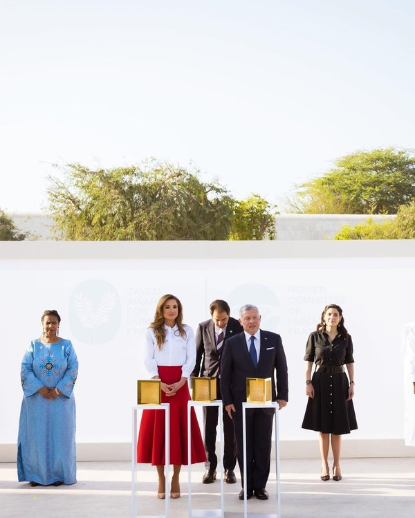 في هذا السياق، شاركت الملكة رانيا في الحفل الذي أقيم في صرح زايد المؤسس بأبوظبي، وكتبت على إنستغرام " مع سيدنا أثناء استلام جائزة زايد للأخوة الإنسانية- أتشرف بمنحي هذه الجائزة بالمناصفة مع جلالة الملك عبدالله الثاني ابن الحسين الذي يجسد القيم التي تحتفل بها الجائزة من تسامح وكرم والتزام ثابت بالسلام".