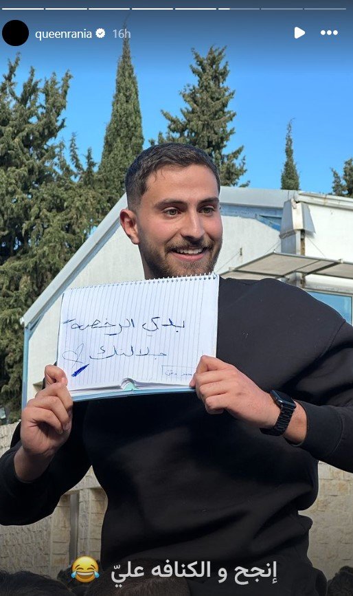 شاركت الملكة رانيا عبر خاصية القصص القصيرة على انستغرام صورةً عفوية تُظهر طالبًا كاتبًا على ورقة صغيرة عبارة "بدي الرخصة جلالتك".