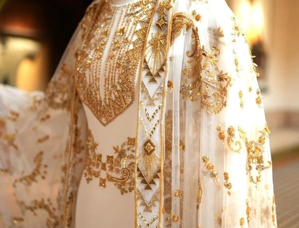 إجتمعت أميرات العائلة المالكة إضافةً إلى 600 سيدة في قصر زهران في الأردن للمشاركة في حفل حناء رجوة آل سيف والأمير الحسين الذي جرى البارحة حيث إرتدت فستانًا من تصميم السعودية هنيدة صيرفي باللون الأبيض مع نقشات ذهبية حيث طرزت عبارة: "أراك فتحلو لدي الحياة".