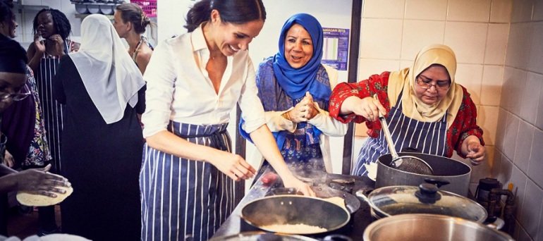 خطوة أولية ناجحة تحسب لصالح ميغان ماركل التي بدأت بمبادراتها لدعم النساء حول العالم بمختلف الطرق. فبالتعاون مع مركز التراث الثقافي الإسلامي في لندن، أطلقت دوقة ساسكس كتاب طبخ تحت عنوان Together Our Community Cookbook وذلك بهدف جمع تبرّعات للعائلات المتضرّرة من حريق برج غرينفيل الذي وقع في يونيو 2017. وفي مقدمة الكتاب كتبت:” دمج هوايات متعدّدة تحت سقف واحد يتيح الفرصة للاستمتاع بالحياة الطبيعيّة وبالحاجة العالمية للتواصل والاجتماع على تناول الطعام في أوقات الحزن والفرح”. وأضافت: “من خلال هذا العمل الخيري، سوف يستطيع هذا المطبخ الازدهار والحفاظ على روح الجمعيّة المميّزة”.