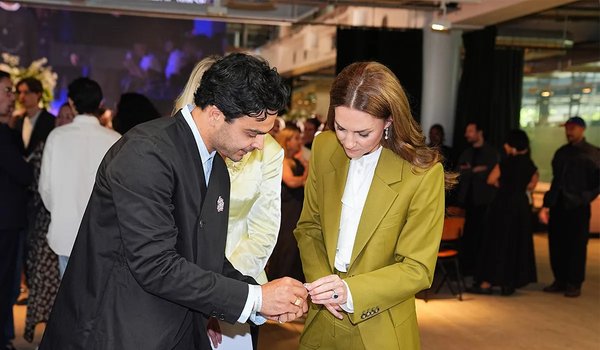 مثّلت كيت العائلة المالكة وهي تسلم الجائزة في احتفالٍ أنيق، حيث ارتدت بدلة باللون الزيتي من توقيع فيكتوريا بيكهام، وجالت في استوديوهات المصممين الشباب الذين يخلقون الإبداع من الاستدامة.