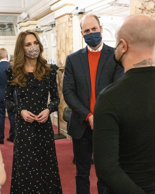 داخل قاعة المسرح جلست العائلة المالكة على الشرفة الملكية، حيث ألقى الأمير ويليام كلمة أثنى فيها على جهود العمال الرئيسين في البلاد من أطقم طبية ومتطوعين وموظفي خدمات الطوارئ وغيرهم.