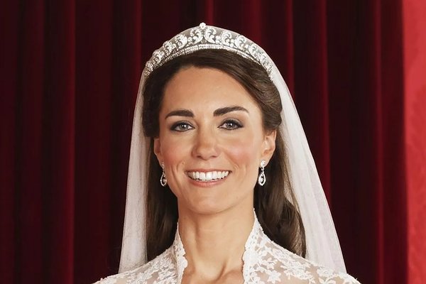 The Halo Tiara: أطلت كيت ميدلتون يوم زفافها بهذا التاج الناعم جدًا وهو هدية كانت تلقتها الملكة إليزابيث سابقًا.