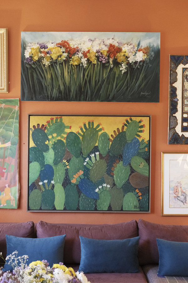 يستقبلنا كريم عند الباب بترحيب حار ورائحة البخور القوية تعبق في المكان، وبعد أن يحضر لنا العصير الطازج اللذيذ، تأتي قططه الأربعة لترحب بنا في عالمها، فتشاركنا الجلسة وكأنها تعي جيداً مدى قيمة المكان الذي تسكنه، ويبدأ حديث صادق ومن القلب عن قصة بيت حوّله مالكه إلى غاليري، يستقبل الذواقة للفن من كل بقاع العالم.