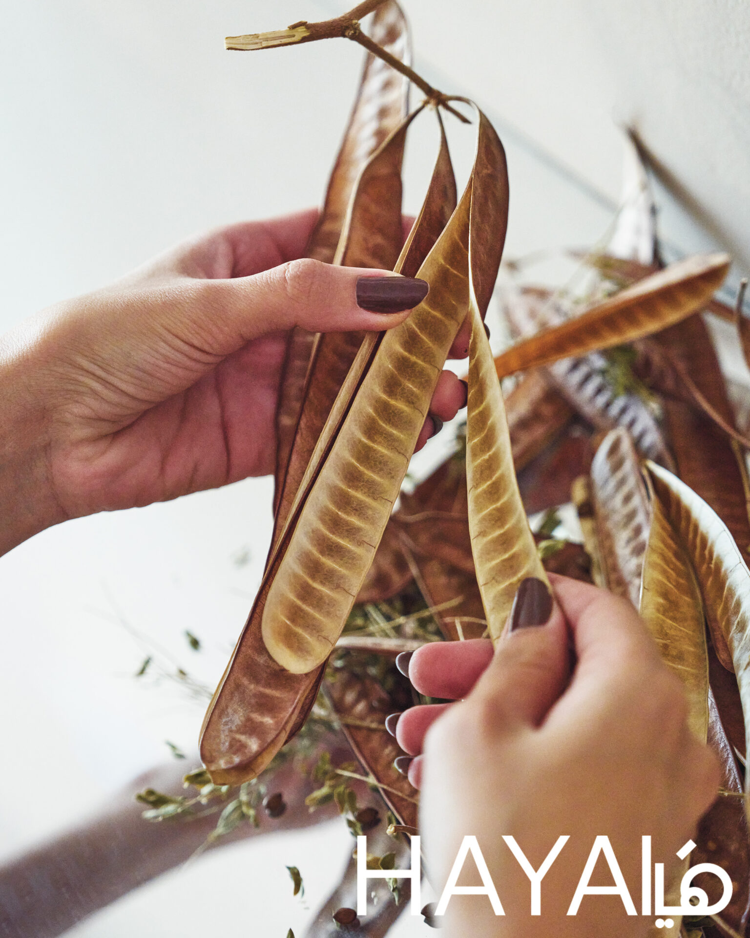 تقول نهير “سنة 2020 وقت الحجر بسبب كوفيد، كنت أقود سيارتي في شوارع الإمارات وأنا أشعر بالملل، ورأيت شجرة “لوسينيا” وانبهرت بجمالها ولمعتها تحت أشعة الشمس، ووقفت لوهلة أتأملها وعرفت أني سأبتكر شيئاً بها، في ذلك الوقت كنت أقوم بالكثير من الأبحاث حول النباتات، فقد كان لديّ قت فراغ وشعرت أن عالم النبات واسع جداً وجميل، وكان اكتشافي لهذه الشجرة وكأنه مقدّر لكي أركز عليها في عملي لاحقاً. قمت بأبحاث حولها وعرفت أنها تتواجد في العديد من الدول العربية مثل الأردن ومصر وسوريا وفلسطين، لذا كان من السهل عليّ استخلاص المادة الخام والعمل عليها في الإمارات لأني نشأت فيها وتركز كل عملي على أرضها”.