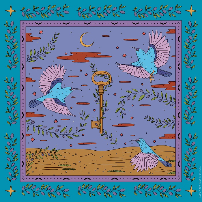 في هذه الأيام، أُكرّس المزيد من طاقتي للتعاونات التي تُثمر أعمالًا مادية وملموسة (كتاب، وشاح حريري، قطعة مطرزة، لوحة) بدلًا من الأعمال الرقمية البحتة، فهذا يُساعدني على الشعور بمزيد من الرسوخ والثبات في هذه الأوقات المتغيرة. وأنا لستُ ممن يُصوّرون أعمالهم على أنها ثورية! طموحاتي أكثر تواضعًا بكثير، فأنا أؤمن ببساطة التعبير عن الرأي عندما تتاح لنا الفرصة. جميعنا قادرون على ذلك، بالطبع قد يتطلب الأمر بعض التنازلات، لكن التنازل يكون أفضل بكثير عندما يكون مُنسجمًا مع ما تؤمن به أفضل من أن يكون مُخالفًا له.