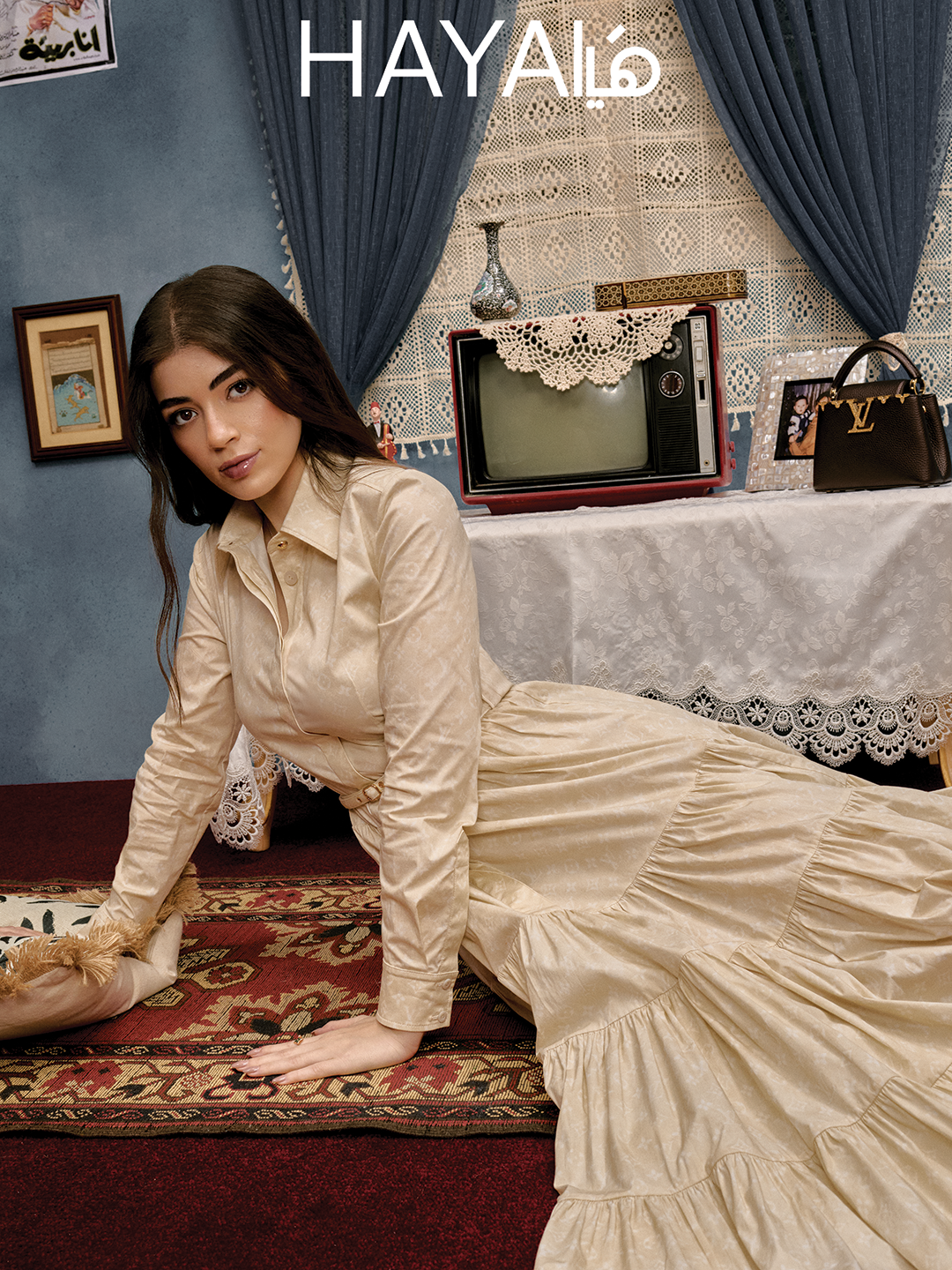 أنتِ اليوم نجمة غلاف هَيا تتعاونين مع دار Louis Vuitton، كيف تلتقي شخصيتكِ وهويتكِ وأسلوبكِ الشخصي والفني مع هذه الدار العريقة؟ من الأشياء التي تربيت عليها، هي إحساسي بقيمي، أنني دائماً مدركة لكوني فتاة عربيه تلتزم بأصول وتقاليد وأيضاً متفتحة ومطّلعة ومثقّفة. وهذا بالضبط ما أشعر به تجاه دار Louis Vuitton، فهي علامة لها قيمة كبيرة وتاريخ عريق، ولكنها استطاعت على مدار الزمن أن تقود صناعة الأزياء وتبقى رائدة في مجال الموضة، لذلك أرى أنّ كل قطعة تصممها تحمل قيمة متفردة وعالية خاصة بها.