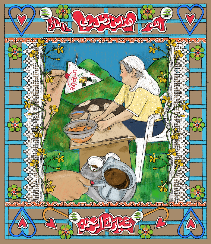 أريد من خلال فني الاحتفاء بشعبنا وتراثنا وتكريمهما، وسرد القصص عنهم وتوثيقها. أريد تسليط الضوء على الأشخاص الذين يبدعون أشياءً رائعة. لديّ حسٌّ توثيقي، لأن نساء عائلتي لم يُوثَّقن قط، ولا وجود لهنّ في شجرة عائلتنا. لقد كان هذا الأمر دافعًا قويًا لي، وألهمني مشاريع توثيقية متعددة. كما أريد تذكير الناس بأنّ الأشياء الصغيرة في الحياة هي التي تجلب البهجة والجمال. أشياء بسيطة مثل الجلوس مع جداتنا، ومشاهدتهنّ وهنّ يُحضّرن الكعك والقهوة، وقراءة أكواب القهوة، واقتطاف الزهور التي تُزهر في أراضينا، وصناعة قطع الكروشيه التي تُزيّن موائدهنّ، وسرد قصص طفولتهنّ أمامنا. جميعنا لدينا ذكريات مشتركة تربطنا بطريقة أو بأخرى.