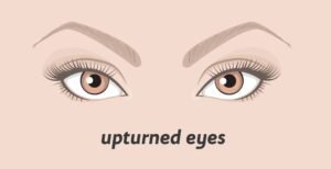 العيون المقلوبة للأعلى – أو عيون القطة بالنسبة للبعض – هي عكس العيون المقلوبة للأسفل. هذا الشكل عادة ما يكون على شكل لوز ولكنه يرتفع قليلاً عند الزاوية الخارجية. كما تتجه الرموش السفلية للأعلى أيضًا.