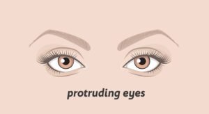 العيون البارزة، والتي تسمى غالبًا بالعيون المنتفخة أو البارزة، هي عندما تبدو مقل العيون وكأنها تبرز من تجويف العين. يمكن أن يعطي هذا مظهرًا مستديرًا. قد لا تلمس القزحية الجفون، وقد يكون بياض العينين واضحًا جدًا.