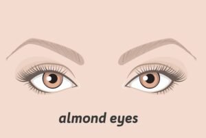 تتميز العيون اللوزية بثنية مرئية وقزحية تلامس أعلى وأسفل الجفن. كما تتميز هذه العين بنهايات تتناقص عند القناة الدمعية والنقطة الخارجية. وهي أوسع من الأشكال الأخرى، ولها جفون أصغر.