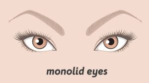 تبدو العيون أحادية الجفن مسطحة من الأمام بدون ثنية أو طية في الجفون. ورغم أن العيون أحادية الجفن قد تبدو صغيرة إلا أنها غالبًا ما تبدو أكبر في الصور عند النظر إليها من زاوية طفيفة.