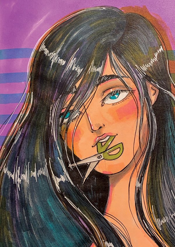 تضيف "لكن، ليس فقط الماضي هو مصدر إلهام رسوم هذا العدد، بل الشجاعة في التعبير عند النساء. في قراءتي للأغاني والأداء أقوم برسم خرائط للمناطق الغير مكتشفة، أمضي في أعماق الخيال ودمج التقاليد بالابتكار، والتقاليد بالمغامرة في التعبير عن الفرح.. إنها احتفال بروح المرأة السعيدة الجاهزة للانطلاق في مغامرات جديدة في غابات التعبير الفني."