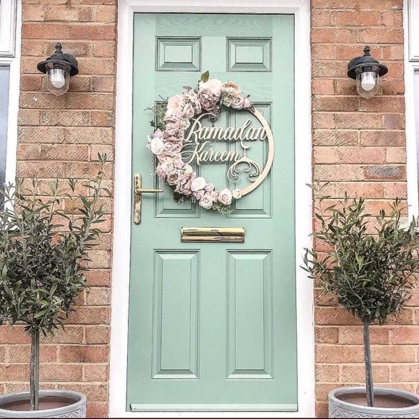 فلتبدأ زينة البيت لرمضان من مدخل المنزل، يمكنك أن تصنعي هذه الزينة بنفسك من الورود وأوراق الشجر مع عباارت رمضان كريم أو أهلا بالشهر الفضيل ويمكنك أن تستعيني بصفحات الانترنت المختصة بصنع هذه الزينة. إبدئي بتزيين البيت من باب المنزل يمكنك إضافة الإضاءة أو بدونها حسب رغبتك.