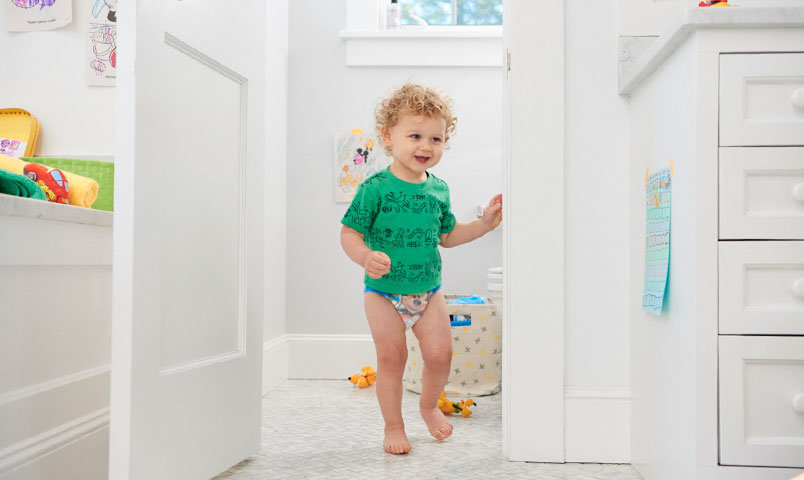 ألبسي الأطفال ملابس يسهل خلعها – على سبيل المثال ، السراويل ذات الأحزمة المرنة. في الطقس الحار ، يمكنك ترك طفلك يرتدي ملابس داخلية عندما تكون في المنزل.