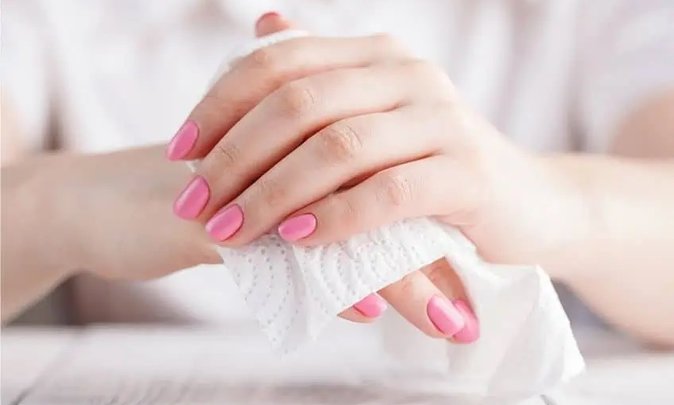أضيفي بعض الصابون إلى الماء الدافئ ثم انقعي يديك بالماء والصابون ،بمجرد أن يذبل الغراء يجب أن تتمكني من تقشيره ببساطة.