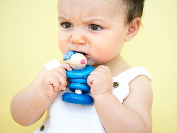 يحب الأطفال وضع الأشياء في أفواههم، لكن إذا بدأ طفلك في قضم أي شيء يمكنه الوصول إليه، فقد يكون في مرحلة التسنين. حاولي إعطاء طفلك حلقة التسنين لأن هذا سيساعد في تهدئة لثته. تجنبي استخدام أي شيء يمكن كسره إلى قطع صلبة، حيث يمكن لطفلك أن يختنق بها.