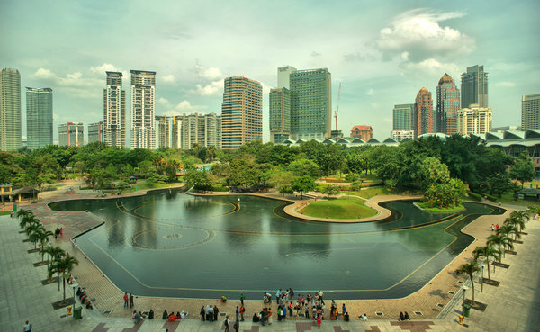يقع منتزه KLCC عند سفح برجي بتروناس التوأم، وهو أكبر منتزه في كوالالمبور، مساحته 50 فدانًا. تم تصميم الحديقة لتندمج مع المناطق السياحية المحيطة بها من خلال الجمع بين المنحوتات والنوافير، مع أكثر من 2000 نوع مختلف من النخيل والنباتات المحلية. تم اختيار الأشجار لضمان جذب الطيور المحلية والمهاجرة، وتعزيز التنوع البيولوجي، وتوفير مجموعة واسعة من الألوان والأشكال المذهلة لتصميم الحديقة.