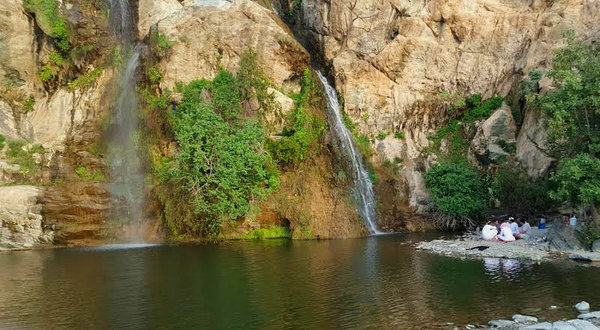 يقع الشلال جنوب محافظة تنومة في منطقة عسير، وبالتحديد في قرية الدهناء، حيث يبعد حوالي 110 كم عن مدينة أبها، ويعد من أبرز المعالم الطبيعية في منطقة عسير؛ فهو من الشلالات النادرة والموجودة داخل المملكة. يستقطب الشلال الآلاف من الزوار الراغبين في الاستمتاع بمنظر الشلال، والمياه تتدفق من أعلى الجبل وصولاً لبحيرة صغيرة أسفل الجبل؛ ليواصل جريانه بعد ذلك إلى وادي تنومة.