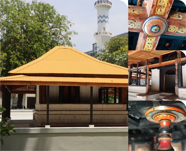 هذا المسجد فريد في تصميمه بشكل هائل. فقد استخدم الحرفيون أحجاراً مرجانية متشابكة لإنشاء هيكله. وكل حجر مزين بنقوش مرجانية متشابكة. ويمكنك العثور على تحف فنية من الأعمال المالديفية التقليدية لنحت الخشب والطلاء داخل المسجد. وبجوار المسجد توجد مئذنة بُنيت عام 1675. وتعد المئذنة من أكثر المعالم شهرة في مدينة Malé .