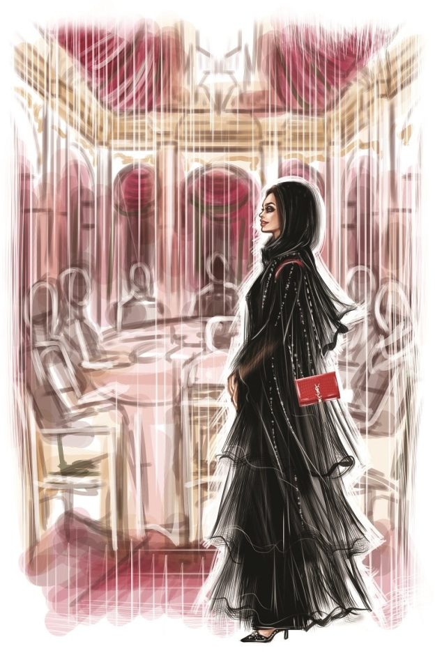 أقول في نفسي: «لولا الصوم ما كنّا رايحين نحسّ بمتعة الإفطار». العائلة والأقارب على مائدة إفطار واحدة. وقدّامنا لوحة البحر الأحمر. أريد أعيش اللحظات ديّة لحظة لحظة ومن غير ما أنسى أيّ تفصيل، أي شعور… أراقب الميّة وللحظة أحسّ إنّه الأمواج الخفيفة تمشي وتمشي وتريد تدخل المكان اللي نجلس بيه. كأنّها تريد تشاركنا فخامة فندق Waldorf Astoria، تريد تشاركنا أجواءنا الحلوة أو تتنشّق رائحة الطعام وتجري كمان وكمان عشان تتذوّقه. بعدين أرجع للوحة العيلة. فعلاً لوحة جميلة يرسمها الشهر الكريم في كل سنة. طبعاً كلّهم يتكلّمون. أصواتهم ونبراتهم تختلف لكن تختلط وتتداخل. حتى الجمل اللي يقولونها تصير نصّ واحد، حكاية واحدة. وابتساماتهم تخلّي الحبكة أحلى، أروع وأنقى. وكده أحسّ بالدفء مع برودة المكيّفات. وفجأة أشوف ملابس البنات، قريباتي، أحسّ نفسي أحضر عرض أزياء في أسابيع الموضة. كل الماركات والمصمّمين على مائدة إفطار واحدة. وكمان كل الألوان والنقشات والقصّات والصيحات. العيلة كلها فاشينيستات. بس فخامة المكان حاجة ثانية. الرقيّ مو معقول والهدوء ياخذك لحلم جميل.