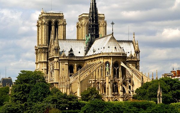 تأسست كاتدرائية نوتردام دي باريس عام 1163 من قبل الملك لويس التاسع (سانت لويس) والأسقف موريس دي سولي ، واستغرق البناء أكثر من 150 عامًا. تم إنشاء الكاتدرائية لأول مرة على الطراز القوطي المبكر ، بينما تُظهر الإضافات اللاحقة (الجبهة الغربية وصحن الكنيسة) الانتقال إلى الطراز القوطي العالي.
