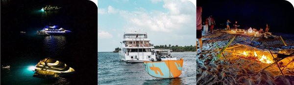إن تجربة القارب القابل للسكن فريدة من نوعها. إنها إحدى أكثر الطرق مغامرةً لتجربة جزر المالديف، كما أنها في الوقت نفسه الأكثر إرضاءً وتهدئةً. وفي مرحلة معينة، تكونين على عمق 30 متراً تحت الماء، وتائهة في عالم غريب تماماً. تسبح أسماك القرش بجانبك، ولا يسعك سوى تأمّل كل ذلك بذهول تام. وبعد بضع ساعات فقط، تحضرين حفلة شواء BBQ على ضفة رملية وسط المحيط الهندي اللازوردي الشاسع. وعند منتصف الليل، تجدين نفسك على سطح السفينة المشمس، مفتونةً بالنجوم الساطعة في السماء الليلية المخملية.