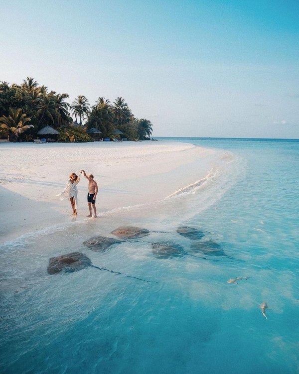 مهما زرت من بحار حول العالم لن تجدي بجمال شواطئ جزر المالديف التي تتميز برمالها الناعمة التي تتلألأ تحت أشعة الشمس الذهبية. هذه اللقطة ستنال إعجاب كل متابعيك حتماً!