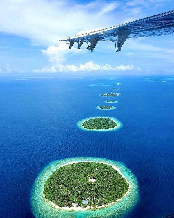 عندما تبدأ بالهبوط إلى جزر المالديف لا تفوت النظر من نافذة الطائرة حيث المنظر سيكون أكثر من ساحر. سترصدين أغلبية الجزر في لحظة ستزيد جرعة الحماس لديك.