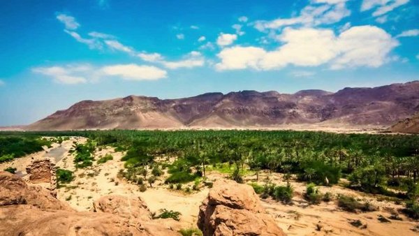يضم الوادي جبال رائعة مميزة بلونها الأخضر والمياه الجارية وتحتوي على عيون الماء، و الشلالات و الينابيع.، بالإضافة إلى أشجار النخيل المنتشرة في الوادي.