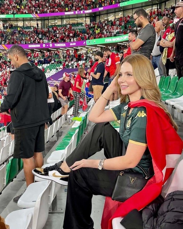 إنها زوجة اللاعب التونسي المعتزل كريم حقي والتي ذهلت الجميع بجمالها خلال تواجدها بين المشجّعين فوصفت بـ"فتاة ديزني".