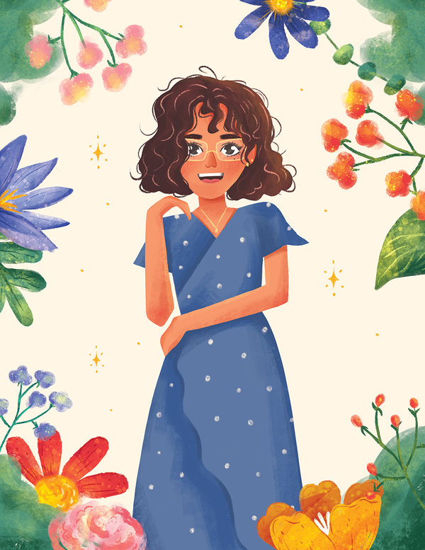 أجابت "من خلال رسوماتي، أعبر عن فكرة أن تكون المرأة على حقيقيتها باستخدام الزهور والطبيعة كعناصر رمزية. الزهور والطبيعة تذكرنا بأهمية العودة إلى جوهرنا الحقيقي والعيش وفقًا لما نحن عليه بالأصل. بالإضافة إلى ذلك، استخدمت النجوم المتألقة لإيصال فكرة أن لكل امرأة سحرها الخاص الذي تتمتع به وقدرتها على التألق. فعندما تكون المرأة صادقة مع نفسها وتقبل من هي على حقيقتها، ستتمكن من التألق وإظهار جوانبها المميزة بكل ثقة. كما أردت إضافة بعض العبارات التذكيرية بأمور يمكن للمرأة القيام بها للبقاء على اتصال مع نفسها ولتكون أيضاً صادقة مع كينونتها".