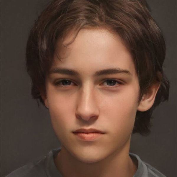 عمره بين ١٤ و١٧ عامًا. يتميز بملامحه الأكثر وضوحًا بين الأطفال، بعيون رمادية داكنة، ووجه طويل، وشعر بني داكن.